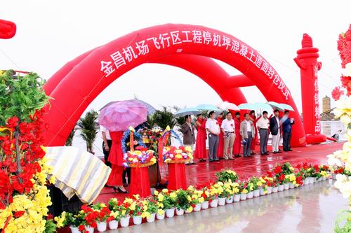2010年8月20日上午10時(shí),金昌機(jī)場飛行區(qū)停機(jī)坪混凝土道面工程順利封倉。甘肅省交通運(yùn)輸廳、金昌市政府、甘肅機(jī)場建設(shè)投資管理公司、甘肅機(jī)場項(xiàng)目建設(shè)指揮部及施工單位等有關(guān)單位領(lǐng)導(dǎo)現(xiàn)場見證了道面工程順利封倉的時(shí)刻。