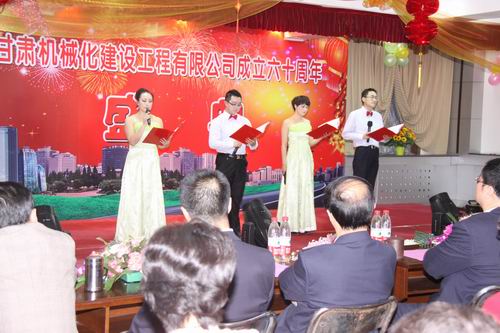 2013年3月22日下午兩點十分,甘肅機械化建設工程有限公司成立六十周年慶典大會在公司二樓大會議室舉行。公司領導、部分退休老領導、機關全體員工、各基層單位先進個人及代表出席大會。大會分兩個階段進行,公司黨委書記胡德生同志主持大會。大會第一階段,公司董事長陳想蕃先生向大會作慶典致辭,黨委書記胡德生同志作了重要講話。大會第二階段為公司文藝匯演,匯演共十二個節(jié)目,公司領導及員工歡聚一堂,表演精彩紛呈,現(xiàn)場氣氛非常熱烈,大會持續(xù)了近兩個小時。
