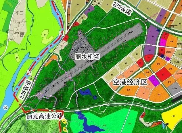 麗水機(jī)場定位為國內(nèi)支線機(jī)場,飛行區(qū)等級指標(biāo)為4C,新建1條長2800米、寬45米的跑道,2條垂直聯(lián)絡(luò)道,8個機(jī)位的站坪,12000平方米的航站樓,以及空管、供油等相關(guān)配套設(shè)施。新建麗水機(jī)場場址位于碧湖鎮(zhèn)東北側(cè)5.2km處甌江上游大溪河段東岸,由飛行區(qū)、航站樓、工作區(qū)等組成,其中飛行區(qū)升降帶及安全區(qū)總長度達(dá)3.3km,寬約300m,航站樓及工作區(qū)布置于飛行區(qū)西北側(cè)。場區(qū)地貌為低山丘陵與山麓溝谷,地形起伏變化較大,場地范圍附近山體最高點(diǎn)位于場區(qū)西南角,高程244.8m,最低點(diǎn)位于場地中部沙溪處,高程64.6m,相對高差約180.2m。場區(qū)山體植被發(fā)育,覆蓋率約80%。