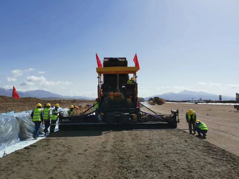 5月28日,伴隨著第一車水泥穩(wěn)定砂礫混合料緩緩倒入攤鋪機(jī)料斗,標(biāo)志著由我司承建的新疆和靜(巴音布魯克)機(jī)場飛行區(qū)跑道水穩(wěn)基層試驗段施工正式拉開序幕。