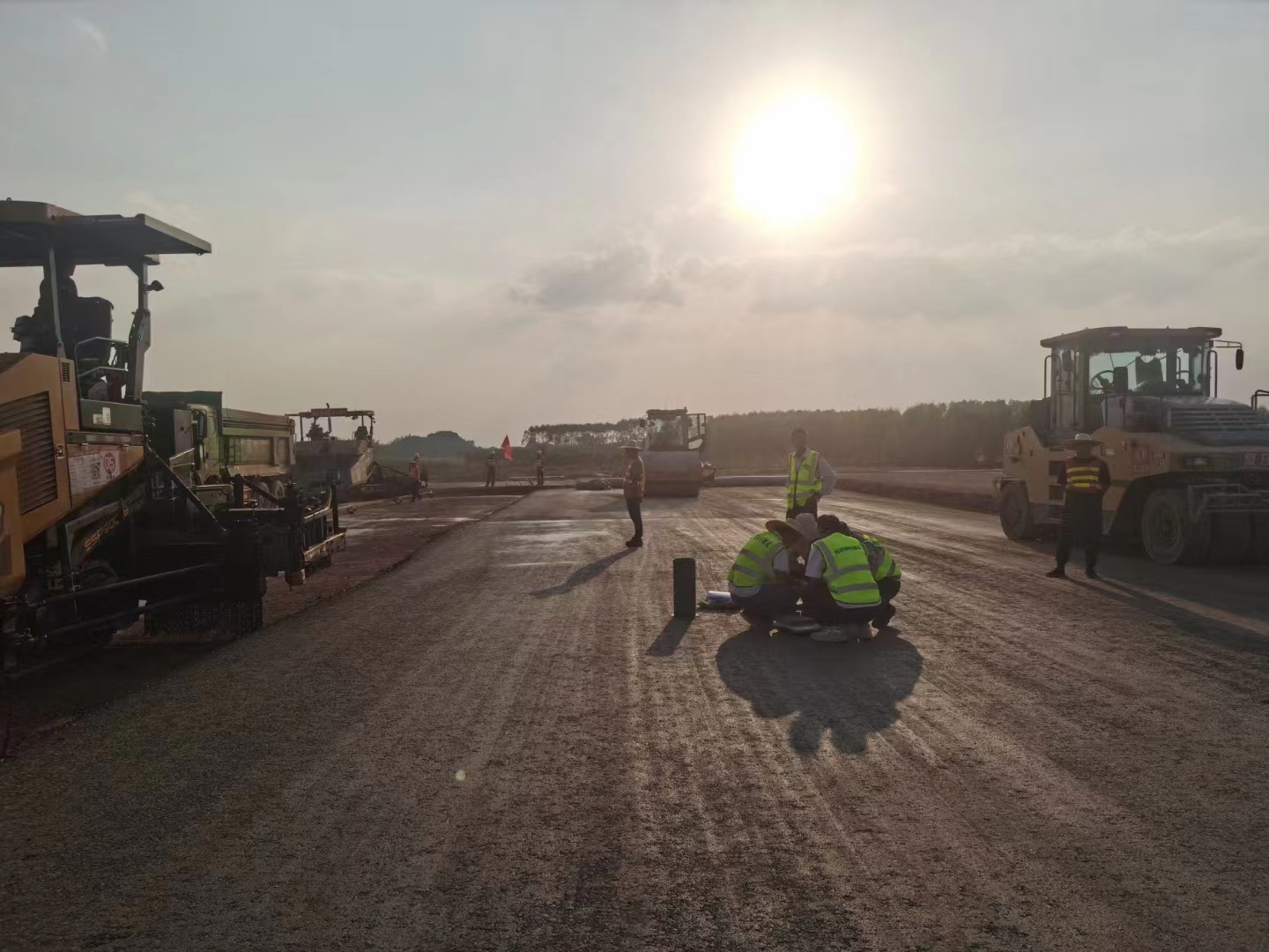 為確保試驗段攤鋪設(shè)備工作高質(zhì)、高效進行,項目部統(tǒng)一部署,各部門相互配合,認真進行施工前各項準備工作,提前對有關(guān)人員進行安全培訓(xùn)和技術(shù)交底。施工現(xiàn)場井然有序,項目負責(zé)人嚴格把控運輸、攤鋪、碾壓、檢測等各施工環(huán)節(jié),保證施工質(zhì)量與安全,同時對試驗段標高、壓實度、平整度和厚度等各項指標進行實時檢測并記錄,確保各項指標符合技術(shù)規(guī)范要求,并確定水穩(wěn)層松鋪系數(shù)、壓路機最佳碾壓遍數(shù)及速率,最終達到預(yù)期試驗效果。