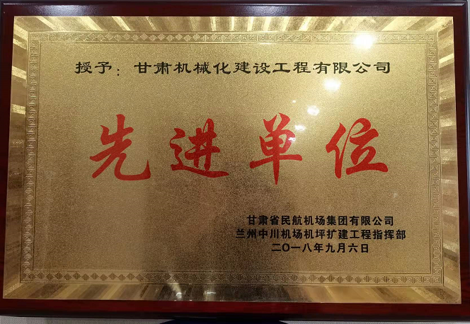 甘肅省民航機場集團有限公司授予我公司先進單位稱號